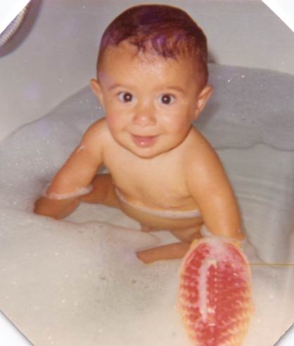 1969: Als Baby beim Baden |